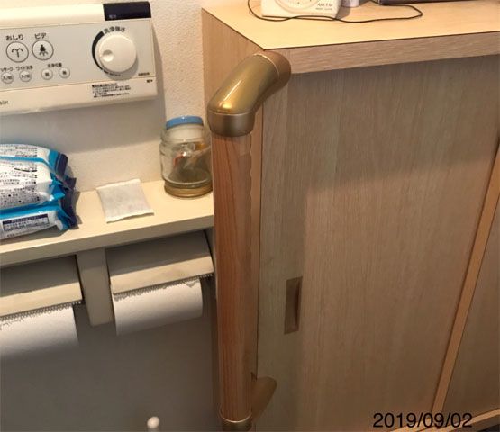 ベッドのある部屋からトイレまで続く壁に手すりをつけてもらいました。