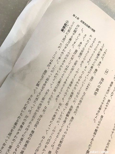それと更年期の噴き出る汗のことを相談すると、まだ解明されていないところらしく、とにかく汗について東洋医学(漢方)から見たさまざまな汗の種類、それに合った漢方薬の本の抜粋をコピーしてもらいました。