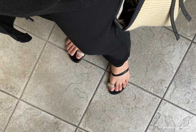 足元もビジュー付きのものにしました。