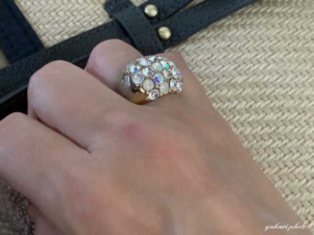 オールブラックにはリングも大振りで派手な「AGATA」のリングをはめました。