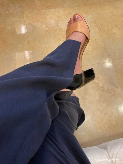 今流行りの裾スリットのパンツを履いて見て、「足さばきもいいし、何よりも涼しい!!」