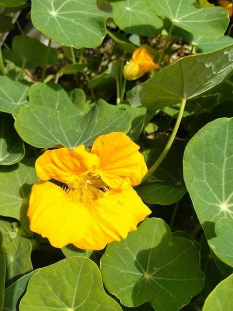逞しく伸びて咲いた一株、少しだけ青いですね