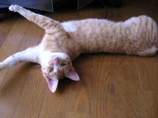 2週間ほど前に溜め撮りした中から選りすぐりの「伸び」をチョイスしてみました。先日、ポンパドールの紙袋に入っていた写真があったでしょう?あの前にこんなことがあったんですよねぇ。あぅぅ~、母ちゃん何してるの?ん?何か物音が聞こえたニャリよ。まだ眠いニャリ・・・・ん~~~、まだ寝ようかなぁ、どうしようかにゃぁ?