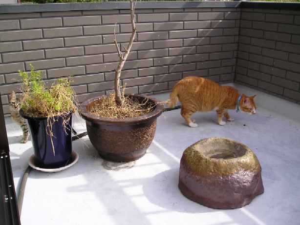 ここ1週間、ずいぶんと気温も下がってきました。今まで2階でオヤスミしていたお嬢様軍団も3階の寝室に加わり、セミダブルベッドに3匹と2人で寝ているのですが・・・朝、苦しいと思って目を覚ますと、私の頭の上にお嬢様軍団、枕、お坊ちゃまの順で寝ており、私は頭を丸めて、布団にもぐった状態になっています。おかげでこの1週間、肩と首が凝っています。今日は久しぶりに日光が暖かなので、ベランダの掃除を。箒がめずらしかったのか、3匹は箒の周りをうろころ・・・写真を撮ってみると、お嬢様軍団はなんだか、凛々しい顔立ちになってきています。女の子なんだから、もう少し太ってもいいんじゃないだろうか。