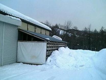 一昨日の大雪~昨日の大雨.....もしかしたら....やばい!70cm位積もった車庫の屋根の雪が~重みでつぶれる!雪降ろししなきゃ!急げー!ギョェーッ!全部落ちてるー!下に居たり、上で降ろしていて一緒に落ちていたら.....とりあえず中のモービル、バギーが無事でよかった~