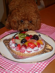 待ちに待った お誕生日。 今日の日を 楽しみにしていたのは、張本人の次男もそうですが・・ 私もとっても楽しみに・・だって ケーキが食べられる・・いつもは 家族の誕生日や バレンタイン。クリスマスだって必ず 家で『チョコレートケーキ』を焼きます。でも 今回は たまには 有名パティシエのケーキも食べたい!!ということで・・奮発 現代の名工。黄綬褒章 授章のホテルプラザ神戸のカフェマメール阿部忠二氏の『フルーツタルト』でお祝い。せなも よだれダラダラ ごっくんの 最高の美味しさでした。そして 甘さ控えめで評判の 近くのケーキ屋さん『チョコレートケーキ』です。私は 甘すぎるケーキは 苦手なのですがこちらのケーキは甘さ控えめでほんとに いくらでも食べられるって感じでした。