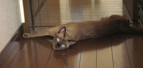 数日ぶりに真夏日だった今日の昼下がり。1階はドライでエアコンがついてますが、2階は扇風機のみ。暑い~ワタシは2階で用事をしても、暑くなって1階に下りて涼み、また2階へ~の繰り返し(´▽`)でも、王子様ネコはこの通り。暑いな~と言いたげに床をゴロンゴロン♪上がったり下りたりの私を横目にゴロンゴロン~♪ダルイ~と聞こえてきそうな緊張感のない顔。口もちょっと開いてるけどいいの?それでいいのーっ??もしや、気だるい感じが気に入ってる・・・とか?名前を呼ぶと、チラっと、目線だけくれました。ま、いっか~('-'*)明日は涼しいそうです。よかったよかった♪別ブログはコチラからどぞ★ 「ワタシ的快適ネット生活」by ゆきもなか