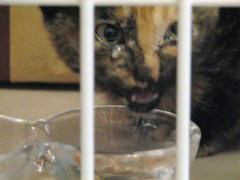 ゴハン食べてるところに近寄ると固まってミャウミャウ鳴くばかりでした。