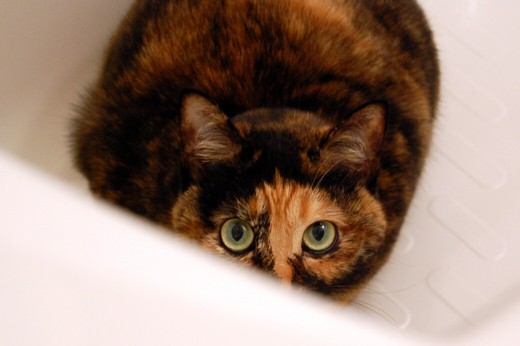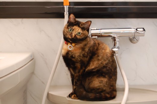 ひとしきりウロウロした後は、なぜかバスタブで毛づくろい。