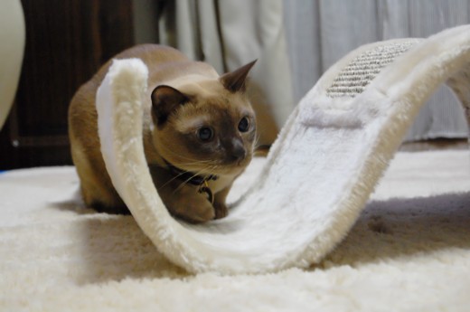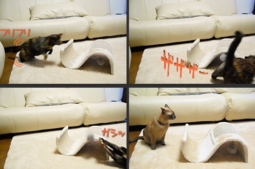 この通りバリバリと爪を研いだり、潜ってみたり~楽しげに遊んでました(´▽`)