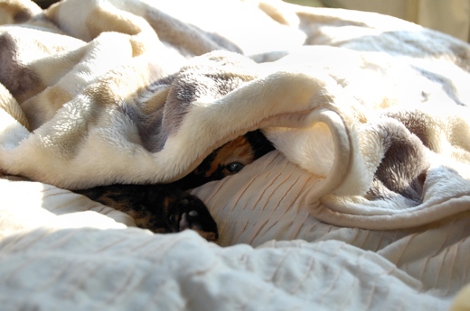 そうそう、そうやってしっかり毛布を握って、肩まで掛けるのよ~(´▽`)