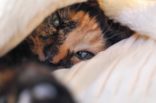 気付くと、毛布の隙間から覗く眼差し・・・。