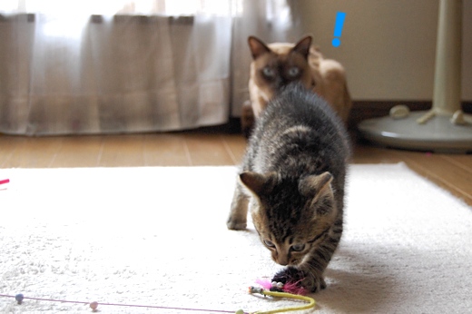 おもちゃと戯れる プー に、ちょっかいを出してみる 王子様ネコ さま。