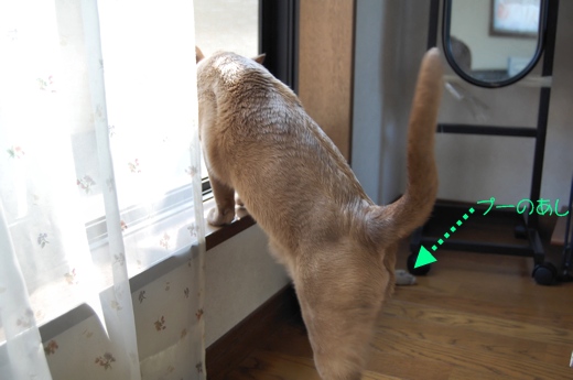 プー を乗り越えて窓枠に上る 王子様ネコ さま。