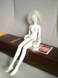 肩こりがひどくなってしまった(><;)昔は 肩こりなんて知らなかったのに最近は肩こりを感じるようになった。寒くなるとひどくて、お医者さんいわく腰からきているらしいのだが、、頭痛と吐き気で、薬飲んでもどうにもこうにもならなくなるのだ。う~~~む、、歳のせいでしょうかねぇ・・(;;)しかし!!そんな中、肩こりを忘れるような嬉しい事が♪♪ゆきなねこ。荒木元太郎氏の生み出す、ユノア人形のシリーズが好きです☆クルス・シスト・エルヴィ・ヴィエル・アズライトを持っているのですが、1/6サイズのフロゥライトは持っていませんでした。「まぁ他のユノアはそのとき買わないといけないけど、フロゥライトは楽天にあるからいつでも買えそうよねぇ~☆」と、のんびり構えてたらいつのまにか終了していて買い損ねたのだ(><;)1/6のアズライトと対にしたかっただけに後悔は大きかったドール。諦めていたのですが、なんとダーリンからプレゼントでもらいました!!気にしてくれていて、手に入れてくれたとのこと☆意外なプレゼントにゆきなねこ大喜び♪♪すごい嬉しいよぉーーー(>▽<*)ありがとう♪♪感謝いたします♪これではれて、6体目を手にする事ができたゆきなねこです☆まだ塗装していないので ちょっと恐いかもしれないが(^^;)うかれた勢いで写真でも♪球体間接ドールの裸体素材がでてきます。苦手な方は御遠慮ください。自己判断よ☆ ☆前日記に書いていた、ユノアと変わらないじゃないか?いえいえ、これドールサイズが26cmくらいなのです。(ユノアは40cm)そのうえ、このサイズで球体間接(中を2本のゴムでつないでいる)だったりします。膝の中から間接がでたりはいったりできるので正座だってできちゃいます☆すごいです。。 ☆右下500円玉を置いて比かくしてみました。わかりずらいですね(^^;)目はアクリルアイを使用していて、首を動かすと目線が移動します。今は素材のみなのでメイクをしていませんからちょっと恐いですけど、ちゃんとメイクするととっても可愛くなります♪そう・・ちゃんとメイクすればね・・・・とにかく、ゆきなねこの持っている技術フル活動させて可愛くしてあげます~(^^)そ、そのためには、肩こり脱出しなくてはっっ(><;;;)誰か、手軽でよい方法をご存知でしたら教えてください~~~~☆