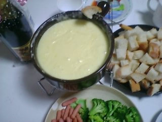夕べ、久しぶりに自宅でチーズフォンデュをした。(ドュ?)☆ずさんな調理で鍋ふち汚れまくってちとあれですね・・(><;)固形燃料をつかったチーズフォンデュ用の小鍋があるので、たま~にするのだ。ゆきなねこ、とろけたチーズが大好物☆それに大好きなパンをつけて食べられたら嬉しくてしかたがないです(^^)お気に入りのパン屋さんでフランスパンを2種買って、一口サイズのウィンナーやブロッコリーとじゃがいも、海老、そして主役のチーズフォンドュの元(ここでゆきなねこの手抜き度がバレますなw)を買ってきました☆とろーりチーズがあつあつで♪ほふほふ♪硬さと柔らかさがなんともいえないパンが口の中でとろけて♪うふふふって感じです♪お友達にいただいた ワインがあったのでそれと一緒に食べたのですが・・う~~~ん♪最高(^▽^*)満足♪満足♪そういえば、、、チーズの鍋に フォークに刺した物を落としたら何か×ゲーム見たいな事をするって聞いた事が・・・なんだっけ?まぁ知らなくて正解か、よくばってチーズを着けていたゆきなねこ、まわりの迷惑考えずに落としまくりでしたからw寒い日は ぜひぜひ皆さんお試しあれ☆北の大地のチーズフォンデュ (1個/200g単位)チーズフォンデュ&ワイン◆送料無料◆ピーコック チーズフォンデュセット【税込】 TPD-40 [TPD40]☆ゆきなねこは固形で火の調節がいまいちですが、これはアルコールなのでいいですね(^^)【毎週30セット】大地のチーズフォンデュ6点セット (フォンデュ鍋セット付) 送料無料☆これで全部揃えられます。お手軽便利~☆チーズ好きにはたまらない♪パーティーにもピッタリ!手軽にチーズフォンデュが楽しめる「電気...☆電気で温めって、保温が安定しているからチーズが焦げなくていいですよねぇ♪チーズフォンデュだけでなく、来月はバレンタインがあるから「チョコフォンドュ」で、大好きな人と2人でいいかもですよん♪(^^)☆私信☆花音さんワインありがとうね~~☆(^▽^)/