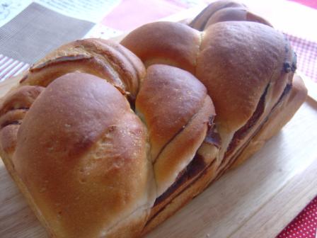 明日お友達がくることになったのでお土産用にパンを焼きました。お子さんが3人いるママさんなので、甘いパンを考えていたのですが、メロンパン、クリームパンetc・・・どれもピンとこなかったのでショコラにしました。今日は200gのうち1割をココアパウダーにしてみました。1斤型に入れて焼いたのですが、おデブちゃんのショコラになっちゃいましたチョコは3種類(チョコ・キャラメル・ホワイトチョコ)入れました。 昨日作った白玉粉入り食パン、今朝トーストして食べましたよカットの時もふんわりやわらかいな~とは思いましたが、一口食べてもやっぱりふわふわ~~もっちり感はほとんどしませんでした。白玉粉が残っている方、オススメです