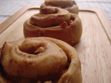 昨日おやつに焼いたパンです。前回のショコラと同じような色をしていますが、違うものですよママパンでキャラメルパウダーを買ったので使ってみたかったんです。 200gのうち2割の40gをキャラメルパウダーにしてみました。 ローストしたくるみも入れました。 生地を広げて全体にバターをぬり、 インスタントコーヒーの粉とグラニュー糖を混ぜたものを振り、 キャラメルチョコチップを散らせて巻いてカットしました。 キャラメルパウダーは15%入れるように表記してあったのですが みなさんのレビューを見るとあまり香りがしないというコメントが 多かったので最初っから20%入れてみました。 キャラメルの味がほんのりしてキャラメルチョコチップとくるみのつぶつぶが 口の中で混ざり合って美味しい~~ キャラメルパウダーは20%の配合で大正解だったようです。 使ったものはこちらです。 ↓