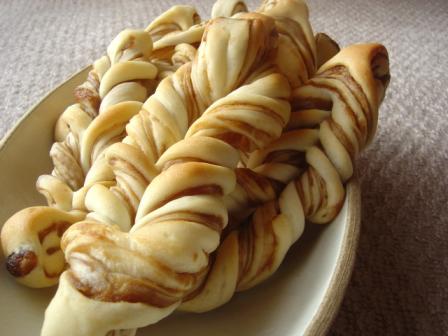 昨日の午後に焼いたパンです。冷凍庫に眠っていたシートを使っています。手前がコーヒーシート、奥がショコラシートを使い1斤型に入れて三つ編み成形です。本当なら今日は支援センターのクリスマス会に行き、お友達やママさんたちの口の中に入っていたはずのパンですが、昨日の夜から息子がダウン熱が出て、青っ鼻にたんが絡んだ咳、おまけにぜーぜーいって苦しそう。昨日は1~2時間おきに泣いて起きる息子相手に私も寝不足午前中に病院に行き薬をもらって今息子は寝ています。娘が帰ってくるあと1時間ちょっと私も少しお昼寝します。ではおやすみなさい