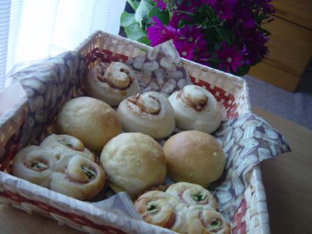 こんにちは1ヶ月以上ほったらかしにしてしておりましたがまたぼちぼち再開していきますのでよろしくお願いしますねすっかり暖かくなり春ですね~~この1ヶ月の間、特に何かあったわけではないのですがあまりパンを焼く気分じゃない日々が続き、そうしているうちに息子がストーブで右指先をやけど治ったと思ったら今度は幼稚園で娘が嘔吐下痢をもらってきて次に息子、夫にまでうつり・・・やっと落ち着いたかな~と思っていたらデジカメを義妹に貸して写真が撮れず・・・とこんな状況だったわけなんです。と、前置きが長くなりましたが今日焼いたパンです。手前からみかさんのシナモンロール、スイートブール、シナモンロール先週からパンはちょこちょこ焼いていたのですが、また娘の食パンブームが到来したようで食パンばかり焼いていました。今日は久しぶりにいろんなパンを焼いてみて、やっぱりパン作りって楽しい成形の時はちょうど息子がお昼寝中だったので集中して成形できたからなおさらそう思ったのかな息子も1才半になり断乳してからものすごい食欲パンもたくさん食べてくれるので作り甲斐があるってもんです。でも小麦粉の値段上がりましたよね小麦粉に限らずほとんどの物が値上げ値上げで主婦とてしては今まで以上に財布の紐をがっちり締めて節約に励まなくっちゃ