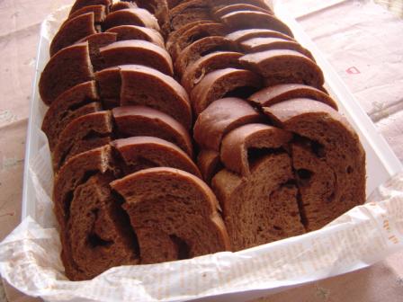 今日は支援センターの遠足です。昨日娘が中耳炎になり行けるかな?と思いましたが熱も下がり元気もいいので参加することにしました。昨日は午前中に病院に行き午後からは家にいたので、パンを焼きました。子供が好きそうなココア生地を300g捏ねて2分割。四角に広げてチョコクリームをたっぷり塗ってチョコチップとキャラメルチョコチップを散らしてくるくる巻きました。1斤型に入れて焼きました。食べやすいようにカットして今日の遠足のおやつに持って行きます。カットしていると甘い香りが広がってきます。大人にはちょっと甘いかもまだ準備が出来ていないので急がなくっちゃ。お天気もいいので気持ち良さそう~~ それでは行って来ます