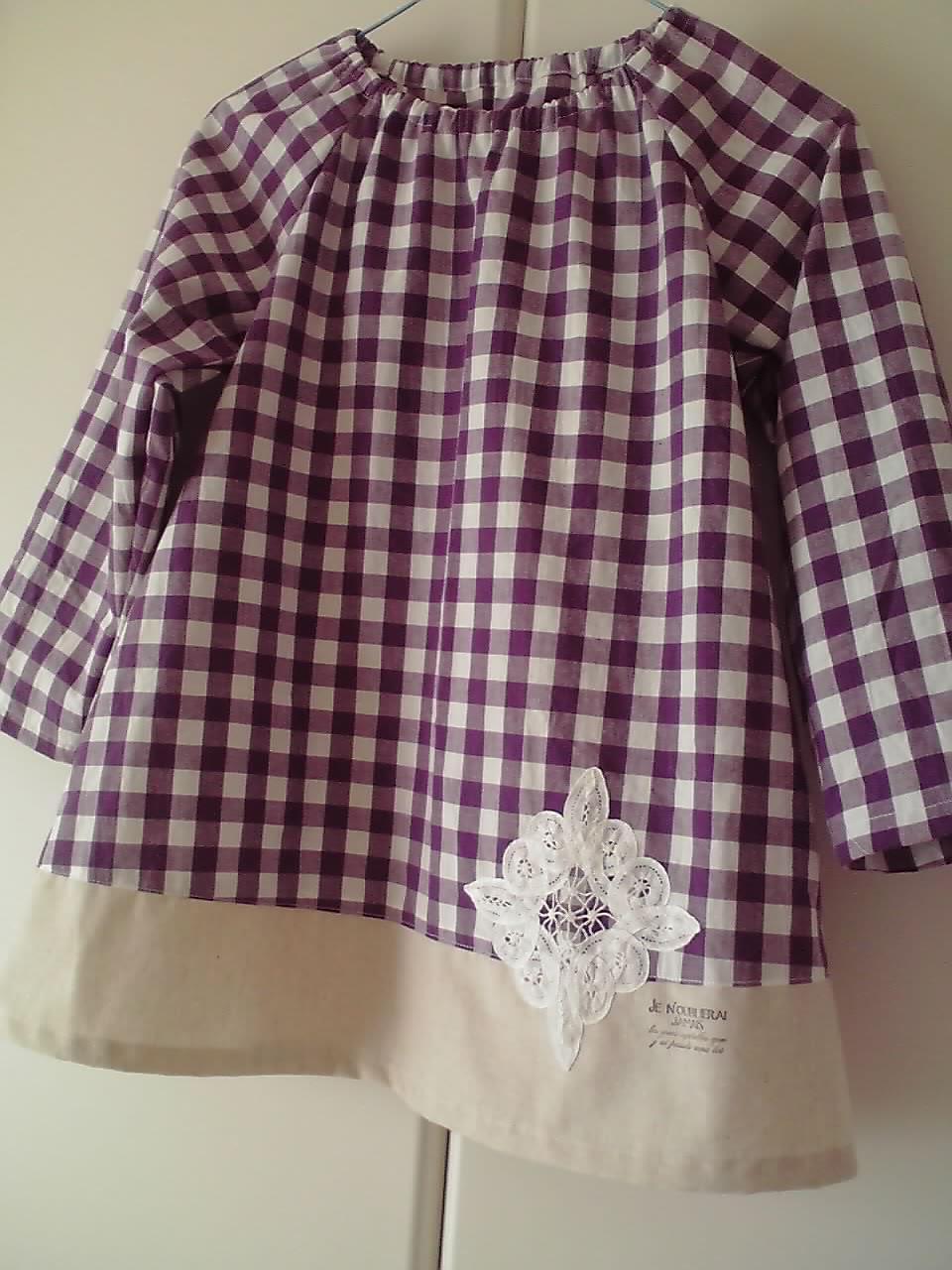 先日、男の子用のスモックを作ったので今回は女の子用のスモックを作ってみました。。。 バテンレースを最初は付けないつもりでしたが、何となく、、、付けてしまいました~。ヾ(≧▽≦)ノギャハハ(しかも大きい。。。)まぁ、本人が気に入ってくれてるのでよし!としましょう。(こんなんばっかりですな)ヾ(≧m≦)+ + + + +今回使用した生地はこちら↓30、000m突破のギンガムチェック!! 楽天最安値!! 超大人気のブロックチェックです~!!ジューシーグレープを使用しました。