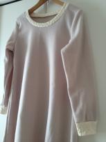 急に冷え込んできました。。。年寄りにこりゃたまらんわい、と、フリースワンピを縫ってみました。 とは言え、これ、先日縫ったワンピのポケット無し、なだけです。いや、upするのも正直申し訳ないような、、、…ごめんなさい。(記録、って事で大目に見てやって下さい)部屋着として着る!って事を前提にして…前回カーブを縫うのが手ごわかったポケットは省略、更に糸替えが大変だった衿・袖口と本体は同系色で、と、挑んだ結果、なんとも間の抜けた感じに…。||||||||||凹( ̄凸 ̄;)凹||||||||||こ、こんな事ならちゃんとやるべきだった。ポケットひとつで可愛さ100倍。今からでも手間をかけりゃ付けれるけど…どうしよう???うぅっ、見ようによってはブーツとかと合わせると可愛いかも~。(って、それじゃ部屋着としての前提が…)っつーか、段々パジャマにも見えてきた。どうする?自分???…せっかくの可愛いパターンをごめんなさい。(寒さ)限界まで「迷走」します。ヾ(≧▽≦)ノギャハハ+++ 冬はキルトが充実♪ +++決算セール激安51%OFF!!【ウイルスをやっつける】小花プリントダイヤキルトニット抗ウイルス加工ダイヤキルトニット。Pres-de オリジナルダイヤキルトニット 無地■オリジナルのニット生地は優しい色合いで何にでも合いそう♪優しくて合わせやすいカラー。キルトニット スノウ季節の柄を楽しむのもいいですね~。キルトニット ドット定番のドット柄。★キルトフェアSALE★フード付キルトジャケット レディース型紙こういうの縫ってみたいなぁ。★キルトフェアSALE★キルティングロングコート ウールメランジキット生地を自分でキルトして作る…超憧れ~。