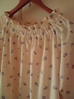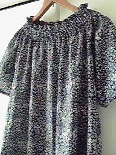 リバティ風(?)の濃紺花柄の生地でギャザーチュニックを作ってみました。。。 実はこれ、生地の色を間違えて買ってしまったんです。。。(ホントは色違いのオフホワイトを買うつもりだったんです)が!思ったより生地が薄かったので濃色の方が透けにくくてかえって良かったかも。(前向きですよ~)ヾ(≧▽≦)ノギャハハ 薄い生地ならではの柔らかい質感のギャザー。今日のような蒸し暑い日は涼しくていいかも~。(えぇ、前向きですよ)ヾ(≧▽≦)ノギャハハバイアス面倒だ~。。。と思う事も多いのですがやっぱりこのひと手間が後々反映されるのだ、と、思うとなんだかんだ言いながらもチマチマと作ってる自分がいます(笑)+++ 今回使用したのは +++◆6月17日朝10時販売スタート!◆★4周年祭≪パート2≫SALE★『フラワースイング』コットン100%60ローンプリント≪ソフト加工≫が超特価!こちらのネイビーを使用しました。。。