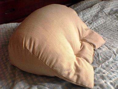 この潰れてる部分にお腹を置いて、横向きに寝るの。