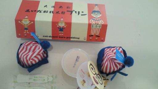 昨日は旦那様が日帰り出張でした(*^_^*)お土産を沢山買ってきてくれました。早速、娘とおやつタイム。食いだおれプリン!ザ!大阪!!お土産は一目でどこか分かるものがいいですね(^-^)箱だけでなく、中身もこだわってます!な、なんと食いだおれ人形の帽子付き♪スプーンはプラじゃなくて紙というのも、地味に気に入りました(^-^)カラメルソースの他に、カリカリのカラメルシュガー付き。2つをトッピングすると、ほんのり苦味がきいて、プリンのコクにマッチして、美味しいです♪ところで・・・この帽子どうしよ。可愛くてもったいなくて捨てられないし、小さいから被れないし(´∀`)とりあえずぬいぐるみにかぶせてます(^m^)