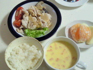 豚しゃぶと、野菜の味噌ポタスープ。果物。味噌ポタージュはちょっと冒険でした。可もなく不可もなく(^_^;)最近夜は娘と一緒に寝てしまうことが多いので、ブログ更新も日中が多くなりました。旦那様は、仕事帰り外で資格試験の勉強をしているらしく最近すれ違い・・・(T_T)