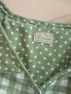 生地は、ギンガムチェックと水玉のリバーシブルWガーゼです。
