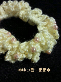編み方は、『かわいいシュシュ』という本を参考にしました。