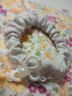 タティングレースのモチーフとパールビーズを縫い付けてみました。