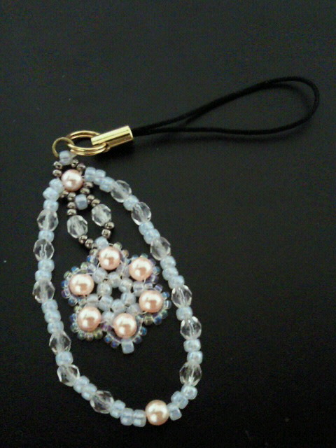 プレゼント用の携帯ストラップを作りました。今回は金色のステッチ糸を使って、ヘリンボーンステッチで編んでみました。白とピンクのビーズから、中に通した糸の金色が透けて、微妙に色合いが変わっていく感じがいいなぁと思いました(^-^)それだけでは少し寂しい感じがしたので、チャームやチェコビーズを付けてみました。これでいいかな~(・・;)う~ん、でもなぁ~(悩)まだ時間があるので、もう少し試行錯誤してみようと思います。