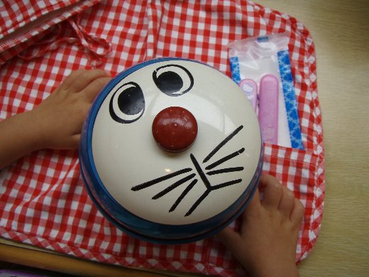 ひゃーーー!!岩手県大地震!!帰ってこられて良かったああ。。。***************前二日間の写真もアップしておきました。こちらも良かったらもう一度どうぞ。一日目二日目夜中に一度かいかいになったみかん。やっぱり鮎かな~(x_x;)朝早く起きたりんごはパパと早々からキッズルームへ。みかんと私は七時半頃起床し昼食夕食用に炊飯器の中のものを弁当箱に入れておにぎり持って朝食へ。子供達のご飯はドラえもんの三段弁当!顔を外すとワカメとじゃこの梅和え二段目はしいたけ、かぶ、こんにゃくの梅煮と、豚挽き肉のロールキャベツ。茹でた鶏肉。三段目はおにぎり。それと別に人参ゼリーとワカメスープ。もちろんすごく喜んでたけどロールキャベツの豚がちょっと臭いがあって臭い臭い(>__