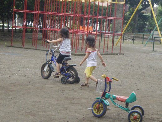 一応心配していたりんごの体調ですが、全く問題なし。やっぱりほんとに脱水だったみたい、子供って簡単になるんですね。今日はいい天気だったものの、午前中はいつもの様にご機嫌最悪だったし午後は2人が楽しく家で遊んでいたのでのんびり私は遊ばせてもらいました(^^そして夕方、涼しくなってから公園へ。どこの公園行く?と聞いたら、「いつもの、近くの公園!」とのリクエスト。最近ここの公園が気に入ったみたいで、やっと一つのところに決まった感じです(^^目の前が小学校なので、「お兄ちゃんいるかな?」って言いながら自転車で向かったら、ドンピシャ、いつものお兄ちゃんがいました。今日はお友達男女合わせて10人ほど。6年生なのに、とにかくうちの子たちを可愛がってずーっと遊んでくれるお兄ちゃん達は、りんごのブランコを押し、固まってしまったみかんをなだめて抱っこしてお砂場に連れて行きみなで大きな池づくり。何故にそんなに遊んでくれるのか?ってくらいずーっとうちの子たちにべったりくっついて遊んでいたお兄ちゃんたちを見ていて、その間も若い淡い男女の組み合わせとか、皆の会話とかが初々しくてほほえましくて、楽しく私も眺めていました。中に、会うのが半年振りくらいのお兄ちゃんがいたんですが、この半年で第二次性徴が始まったようで、背がぐんと伸び、声が変わり、顔が!めちゃくちゃ可愛くてハンサムで輝くように(笑)変化していて、びっくり!(ジャニーズの誰よりもかわいい感じ(笑))みていると、凄く気持ちが素直で優しくて、子供が好きで正義感も強く多分運動神経も良さそうで、言葉遣いもきちんとしていて、いやあ、あまりにまぶしすぎて恥ずかしくて顔が見られないほどでした(笑)私って街中で、あ!あの人かっこいい!とか思ったことなかったんだけどいやあ、あの子はよかった(爆)そんな自分の気持ちに、私もおばさんになったなとも思いました(笑)で、散々遊んで,帰らない!と言い張り、どろどろになりながら3時間、7時までたっぷり遊び帰宅。帰り道ですでに眠くて超不機嫌だったりんごは食事中に寝てしまいました。さて、先日のシュタイナー勉強会のときに、あとで、と書いた幼稚園の事。実は最近幼稚園の事でかなり悩んでたんです。元々は茂原に行くつもりで、二年保育でってつもりだったんです。それがオープンデーで2年は多分入れない、三年じゃないと、って聞いたところから迷いが出始めました。2人に、幼稚園の事、何回聞いても、お友達は要らない、ママと一緒にいたい、幼稚園行きたくない、と言うので、それならしょうがない、二年にするしかないな、と思ってました。でもそうなると、茂原は難しいから別のところですよね。と考えているところに福岡旅行があり、旦那さんの職場の方々と久々にお会いして、うーん、待遇は悪いけれど(失礼(笑))やっぱりこの職場の方々との人間関係は本当に素敵でたとえあちらの方にいい病院を見つけたとしてもこれをやめてしまうのは、もったいないかなあ、しかも見つからないし、と思うようになりました。で、先日父が一時帰宅したときに、前から気づいてはいたけれど(笑)、やっぱり父がこんな状態なのに、遠くの田舎に行って引っ込むって言うのはいくら老後は子供達は面倒を見ないで!と両親がいくら強く言っていてもあまりにも親不孝なんじゃないかと言う気持ちもさすがに出てきました。それから我が家、何気に、結婚前から合計8年くらい住み、この下町は、とても人が良くて暮らしやすいなあとかなり気にいっているのも事実で、タワーができるから小さい子とは住めないけれど、売ってしまうのはもったいないかも。。。と言う気持ちも強くなってきました。そんなこんなで今すぐ茂原行き、の気持ちが実は少ししぼんできていたのです。でもシュタイナーには絶対に入れたい!の気持ちは変わらないので、茂原の夢は持ったままで、家は売らずに横浜シュタイナー園(実家のすぐそば!なのでちょっと嫌なんですが(笑))か、藤野に賃貸で借りて行くかなあ(一応旦那さんの職場に通勤圏内なんですよねえ)と思い始めていたんです。(横浜のほうはフリースクールで藤野のほうは学校法人なのでまた悩むのですが。。)で、シュタイナー勉強会で、まずはどこのシュタイナー園でも3年じゃないと無理だと思う、という衝撃的な事実を知りました。そうすると、選択肢は三つ。・頑張って三年で行かす。・幼稚園はシュタイナーを諦めて、自然系の幼稚園に行かす。(割と近所にある)・幼稚園に行かずに自主保育や色々単発で参加する。勉強会の間にこんなことを考えていたんですが、その後公園で遊んだときにまた会った、サークルのお母さん方に、近所のその幼稚園、やってることは素晴らしいけれど、お母さん達は例えばポランや、このサークルの方々みたいな、なんていうか、考えの一致する人たちばかりではなかった、と聞きました。そう、普通の幼稚園に行かせることで、何が嫌か