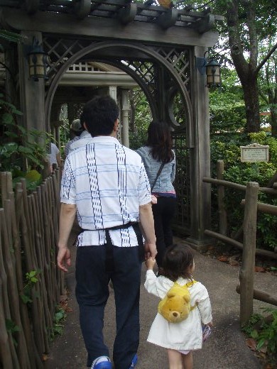 昨日シュタイナーで色々反省したくせに、さっぱりシュタイナー的でないですが(笑)今日は待ちに待ったディズニーランドの日!前々から色々準備していて、とうとう明日!となった昨日の夜、夕飯も食べずに6時に寝てしまったりんごが、突然8時過ぎに体をびくびくさせてうなり始め、なに!?やばい!!!と熱を測ると38度。ああ、こりゃ、中止だ(涙)と思い声をかけると、「あつい!あつい!あつい!」と叫ぶりんご。旦那さんがとりあえず冷たい水をたくさん飲ませろというので飲ませるとごくごく多量に飲むりんご。ミッキーさんダメかなあっていったら、ミッキーさんいけないよって本人が言うほどつらかったみたい。落ち着いてから旦那さんが、これは風邪じゃなくてもしかして脱水?って言われて、そういえば!昨日は朝から寝るまで、持って行った水筒の水、ほとんど飲んでなかったかも。。。多分保育室では全く飲んでなかったみたいだし・・・それで案の定、水を飲んでしばらくしたらぐんぐん熱が下がり、「もうお熱ないの、ミッキーさん明日いけるの」、とりんご。ま、様子を見て、ということでとりあえず準備をして寝ることに。で、寝る前、みかんのほうは、何も心当たりがないのに、目に何か入ったようで、1時間くらい、何で痒いの!?と目を掻き毟り、洗っても目薬差してもだめで、白目がゼリーのようになってしまい、なんだか2人とも絶不調って感じ(^^;不安に思いつつ朝を迎えると二人ともめちゃくちゃ元気。一抹の不安はありつつも、数か月前から患者さんを調整して旦那さんが休みを取ったとか、3歳になると有料とか大人の都合がいくつかあったため(笑)決行しちゃいました(^^;朝どたばたと用意をして開園に間に合うように8時過ぎに出発!9時前に到着し、中へ。入り口についたときにはもう入場が始まってて、とりあえず、今日は初めて開園と同時に来たので、ショーのあるレストランに予約してランチを食べよう!と計画をしていたので、急いでそのレストランに向かいました。皆走ってるね?って子供達が言うので、ディズニーランドの朝は一番大事なのよなんて答えたら、それじゃあ、あんたも走ったほうがいいんじゃないの?って旦那さんに言われて、そうかも、と走ってレストランに行くと、ランチの予約は終わりました~だって!えー!そんなにすぐに終わっちゃうんだあ!平日なのに(涙)しょうがないのでその足でファストパスを取りにぷーさんのハニーハントへ。行ってみたら、ファストパスも結構並んでるのに、まだ15分待ちだったのでじゃあ並んじゃおう!ということになり、並ぶことに。いつ来ても120分待ちは下らないアトラクションなので入ったことがなかったのですが、ほんとにすいすい列が進み、中の楽しいぷーさんの絵を堪能することもなくあっという間に順番が回ってきました。ぷーさんの絵にすっかりうきうき楽しそうだった2人だったのですが、割と中は暗くてちょっと怖い感じでみかんの表情は暗め。出てきてみたら、ぷーさん怖かった、って(^^;その後は途中でミニーちゃんのお耳を買ってもらってご機嫌になった2人。ウエスタンリバー鉄道へ。最初は汽車!と大喜びだった2人ですが最後に恐竜が出てきて、みかんは最初から私に顔を押し付けて全く見ずで、りんごはしばらくじっと見ていて、恐竜ががおー!って泣いたら、うわーーーーん!!!こわいーーーー!!!と泣いてしまいました(笑)そして一度玄関に戻り夜の予約したレストランに2人の夕食を預けて、10時のグリーティングショーを見学♪もう怖いから乗らない!と言う2人に、今度は怖くないよ!と言いながら回転木馬へ。5分待ちですぐに順番が回ってきてりんごは一人で乗る!みかんはママと乗る!と言うので二手に分かれて乗ろうと思ったら、あっという間に二人乗りの木馬を取られてしまい、絶対一緒じゃないといや!と泣くみかんのために次回まで待ってやっと乗りました。りんごもみかんも満足そう。そして目の前のアリスのティーパーティーのレストランが、一度行ってみたいと思ってたんだけど全然すいていたので入ることに。ディズニーはお弁当持込禁止だけれど、図書館で借りた本によれば(笑)アレルギーの人はレストランの入り口で言えば問題なしとのことだったので持込をお願いし列へ。たった10分ほどで食べものを買うことができました(^^そうそう、列に並んでいるときに、多分料理長とレストランの責任者っぽい人が2人できてくれて、持込ではなくてアレルギー食を作って欲しいとお願いしていたんだと勘違いしていて、アレルゲンを教えてくださいといわれました。持っていた紙にはかなり多種類のアレルゲンをチェックする紙が書いてあって、いや、多分ダメですから、と言ったものの、でも、一応!と言われてちょっと相談したら、どうもメカジキのオリーブオイルソテーと茹で野菜ならできたみたい。でもまあ我が家は油もダメだし、持ってきているのでありがたく断りましたが、もうちょっと食べられる子だ