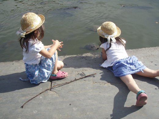 昨晩は肉をいっぱい食べたので夜中にも授乳したんですが 寒いのにかけた布団を皆蹴ってしまうので、ぶどうくんが冷た~くなってました(??????@) 九時から八時まで途中二回起きたもののぐっすり寝たので今朝はすっきり! 持ってきた食材で朝ご飯にしました。 が、出汁用の煮干しや昆布、野菜を用意したのに味噌忘れるし、 サラダなのに塩しかないし、肉を一枚残しておこうと思ったのに 忘れたし(笑)で、超片手落ちな朝食でした(^^;) 昨日買ったブロッコリーを食べてみたいというので、ひとかけらあげて 食後に冷やしておいたりんごを食べてチェックアウト。 そうそう、二人、あれだけ食べたのに、全く痒くならなかったです。 それどころか島根の抹茶かダニが原因と思われる湿疹が綺麗になってました。 空気も綺麗だしな~。チェックアウト後は また川で遊びたいと二人が言うので、パンツとシャツで川に入ったんですが、 二人とも見事にすってんころりん(^^;)足湯で温まり着替える羽目になりました。 十時過ぎに出発して、まずは昨日の道の駅へ。 宿に明宝ハムの歴史の絵本がでているのを見たら、 ハムの旨味を引き出すための少量の天然成分の添加物以外は使ってないと 書いてあったので買ってみました(^-^) ついでに市場で、欲しかったチューリップの球根を買い、松茸の文字にひかれ(笑) 八百屋さんのようなところへ行き、松茸は買えなかったけど(笑) 果物や野菜をゲット。ここでも試食用のりんごやぶどうを二人は 一つずつ頂いてしまいまたもや果物タイムに(^^;) そして買い物後は郡上八幡へ。車を置いて町歩きに出ました。 まずは郡上博覧館へ。郡上の歴史の博物館でした。郡上は手作業の 伝統が豊かなようで、繭細工や、染め、現在では食品サンプルが盛んで 展示がたくさんしてありました。また郡上踊りも有名で、多種の踊りを ビデオで見られるようになっていて、踊り好きな二人は釘付け。 ここを出たあとは、昔の街並みを気持ちよくあるき、天然水の汲み場へ。 ほんとにどこの水も綺麗なんですが、この汲み場はなんだかちょっと汚くて 二人に飲ませるのは躊躇われ、手だけ洗い、川に出たい!という二人のため またもや河原へ。日差しがきつかったんだけどしばし河原でちゃぷちゃぷやって 涼しくなった二人は元気を取り戻し、次へ。 次はサンプル食品屋さん。サンプル作りとか工房もあったんだけど 小学生からで残念がりながらちょっと眺めました。 凄く良くできたサンプルたちを二人が凄く欲しがってぐずったけど、 サンプルと鮎食べるのどっちがいい、と旦那さんが聞いたら、鮎!とのことで 買わずにすみました(^^;)お次はいこうと思ってた遊童館へ。 行ってみたら昨日の木ぼっくり人形の作者の美術館でした。 切り紙や折り紙で遊べると聞いていたのに、先生(作者)が今日は 遠くにお出かけで、やってないそうで残念。 作品を見て、三階でお絵かきをして後にしました。 出たところに探していた飛騨牛の定食(旦那さん向け)、鮎の定食(私向け)の 両方が食べられる小さな良さげなお店を発見! 旦那さんは食べたかった蕎麦も入った飛騨牛の定食を、私は 鮎の塩焼き、丸煮、鮎ご飯などの入った定食を、子供たちにも 1200円もする鮎の塩焼きを二人で一尾注文して、美味しく頂きました♪ 二人、ほんとに美味しかったらしく、これでもかと言うくらいご飯をお代わり(^-^) その後は小さな小川で鯉に餌をやり、ふらっと入った街中のお菓子屋さんで お菓子を買い、巨大なお土産ショップでお土産を買い、とお買い物タイム。 お菓子は、黒糖蜜をかけて食べる、郡上の綺麗な水のゼリー(ゲル化剤と トレハロースで固めた水)というのを、 子供たちに食べさせちゃおうか、と買ったので大喜びの二人。 (もうなんか気分もゆるゆるです(^^;) かゆくてもいいの!ちゃんと自分でかくから食べたい、と頼もしい言葉を得たので そのまま車に戻り今度は八幡城へいき、車を止めておやつタイム。 旦那さんはシュークリーム、私達三人はゼリーを食べて、二人の元気がまた回復(笑) その足で城へ。相変わらずぶどうくんを抱いて天守閣に登るのはきつかったけど 結構立派な天守閣、綺麗な景色で気持ちよかった~。 二人はお城は嫌だ~って言ってましたが、お城=姫路城みたいに混んでると 思っていたようで、すいた城内に楽しそうに走り回ってました(^-^) 城が終わったら四時半でそろそろ帰路につくことに。 七時頃諏訪湖に到着。寝ていたみかんもちょうど起きてナイスタイミング。 起きてきたみかんはかいかい&顔にくっきり貨幣湿疹(??????@) 多分さっきのお菓子でしょうねえ…。本人もわかってるようで 必死に自分で掻いています…。たった一口なのになあ。 さて今日の夕食は峠の釜飯。胃も痛かったのでこの位のボリュームで充分(^^;) ぶどうくんの世話も終わり、再度走り出すと、先ほどとは逆にりんごが寝て みかんが元気に。一時間ほど元気にともに遊び、私が先にダウン。 運転を交代するっていっ