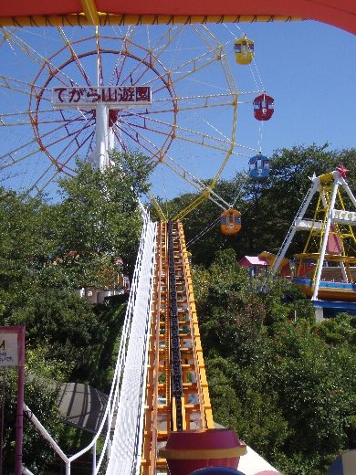昨日は実家&こどもの国へ行ってきました♪まだぶどうくんを見ていない父のために実家に行こうと思ったんですが、いつも一日実家にいると私達は休まるけど(笑)、母は大変だし子供達は飽きるので、たまには子供の国に連れて行ってあげようと思って計画しました♪こどもの国は実家からバスで行ける程度の遠さなのですが私は小学校の頃は6年間遠足はこどもの国、夏はプール、冬はスケートをしに毎週のように出かけていた、わが庭のようなもので(笑)とても身近な場所です。父が昔から子供達を連れて行きたいと切望していたんですが連れて行けないまま病気に倒れ、皮肉なもので、毎週見舞いに行っていたときに、一度子供達は弟と一緒に行きましたが、まだ父とはいけずじまいでした。母にその計画を話したら、是非父も行きたい!とのことで一緒に行くことに♪子供達にはホームページを見せたり、前回行ったときの写真を見せたらもちろん大盛り上がりでしたが、病気で時間の概念がちょっとおかしい父も、今日か?今日か?と毎日聞くほど楽しみにしていたようです♪そんなわけで朝早いうちに実家へ出かけて、ぶどうくんに授乳だけして11時には出発しました。父と母はタクシーで、私達は車で。正面玄関で車椅子をレンタルして、中に入るともう12時だったので、まずはお弁当タイム。(の前にチョークでお絵かきしたんだったわ)↓子どもが喜ぶようにほとんど大人と子どものお弁当を同じものにしました♪随分食材が増えた感じがするでしょ!(^^楽しくお弁当を食べて、お楽しみの梨を食べた後はお遊び開始!正面玄関脇の遊具広場で、炎天下の中楽しそうに遊ぶ二人。父は、ちょっと見えてもすぐに姿が見えなくなると悲しそうでしたが(笑)、日陰でぶどうくんを見て嬉しそうでした♪一時間ほど遊んだあとは、ミニSLへ。パパに並んでもらっている間に、ばあばが持ってきてくれたシャボン玉をし、SLを堪能。そしてSLから見えた公園にも行きたい!と奥へ進みました。父はそのたび、車椅子を降りて一生懸命段差を歩き椅子に座って鑑賞。ずっとずっと念願だったこどもの国が嬉しくてしょうがない様子。ああ、おれも一緒に駆け回りたい!と言ってました。。そしてこのままでは時間がいくらあっても足りないと早めに次へ。お次は前回も大喜びだったお椀のような滑る場所を楽しんでローラー滑り台へ。あまりに大きすぎて一回でこちらはおしまい。そしてせせらぎ広場で遊びたい!というのを何とかなだめて、おとぎの広場でちょっと遊びその後も道々ちょっとづつ置いてある遊具で遊びつつまわりました。そしてやっと牧場に到着。実は2人、ホームページを見て、お馬さんに乗りたい!って言ってたんです。でも牧場で、お馬かあ。。。痒そうだなあといまいち乗り気になれなかった私。それで牧場に着く頃には時間がなくなっちゃった、という風になるように、遊具で遊ばせつつまわってたんですよね(笑)牧場についてまずポニーが目に付いたんですが、計画通り(笑)、ポニーに乗るのはもうおしまいになってた!でも去年東武動物公園とか市川動植物園だったかな?でポニーを見たときは遠くからでも号泣だったのに今回は残念そうに、近くによってポニーとしばし遊んでいてびっくりしました(^^そして牧場の奥の子ども動物園に気づかないように(笑)先に進み、ソフトクリーム作り見学コーナーへ。見学はやってなかったんだけど、ソフトクリームって見てみたい!と言う2人のために、パパがソフトクリームを食べました(笑)そして今度は搾乳室へ。怖い怖い(笑)牛さんのお乳が搾られる場所です。ガラスに囲まれてふれる可能性はなく安心なので楽しく搾乳を見学。乳牛のおっぱいって凄いですね!あんなに張ったら痛そうとか思っちゃいましたよ(笑)そして搾乳室の後ろにある子ども遊牧場で走りたい!と2人が言うので、パパと2人は遊牧場へ。山のてっぺんまでかけあがり、ボールを少し投げて上から一気に走って降りてきました(^^楽しそう!芝生に寝転がったりはしなかったから農薬も大丈夫かな(^^;そしてここでタイムアップ!閉園の音楽が。もし時間があったら自転車乗り場とか乗り物系もとか思ってたけど、とてもとてもそこまでは回れずでした。父と母は、裏の駐車場から車に乗って先に家に。私達は更に遊具で多少遊びつつ急いで玄関へ。駐車場の出口渋滞にもまれつつ実家に戻るともう5時半過ぎ。駐車場まで母が出てきてくれたので、子供達を託し私と旦那さんは夕食へ。昨日の夕食は考えた末、一度行ってみたいと思っていたこのステーキ屋さんへ。最初はぶどうくんも預けて行く予定だったけど、帰るときに気づいたら、ぶどうくん、お昼ご飯のときにおっぱい飲んで以来、一度も飲まずじまいだったんです!(笑)それで、ぶどうくんも連れて行くことに。ベビー連れで行くと、素敵な個室に通してくれてパパはコースを、私はひれステーキの単品とポテトフライトライスを注文。完全バリアフリーだったし