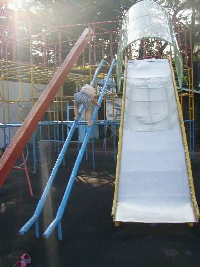 写真は小学校の遊具で遊ぶ二人。 なかなかダイナミックに遊んでます。 昨日は近所のお友達が第一希望にしているという区立幼稚園が ちょうど未就園児の会の日だったので行ってきました。 (墨田区の区立幼稚園はみな、週に一度未就園児の会をしてるんです) 区内といえど結構遠いこちらは、うちのすぐ近くの駅から 一度電車を乗り換えないといけません。 駅からは相変わらずの方向音痴でかなり遠回りしましたが 歩いて五、六分。園バスはありません。 到着してびっくり!近所の区立のイメージとは大違い! 凄く広いんです。区立は一律人工的な床なんだけど、 それでも何だか凄く自然を感じます。 多分、園芸に力を入れているようで、一人ずつ稲を育てていたり 野菜や果物がそこら中に栽培してあるからかな? 昨日はたまたま未就園児の会がお休みの日だったそうなんですが せっかくいらっしゃったからと遊ばせてくれました。 玄関までわざわざ迎えに出てくれた園長さんがぶどうくんを抱っこしててあげる とおっしゃったので、お願いして、二人と三輪車置き場へ。 前から試してみたいと思ってた補助なし自転車もあったので 試してみましたが、やっぱりしばらく頑張れば出来そうな感じ! ま、さすがにこの日は無理で三輪車とか補助ありで遊びました。 先生にお話を伺いたかったので、先生の方へ行くと二人もついてきて 職員室でおままごとをさせてもらうことになりました。 ご飯はお弁当、クリスマス会や誕生日会は食べ物なし。 いろんな収穫が出来るのでそれを食べることはよくあり。 味噌汁にしたりとか…。 クッキー作りとかはしてない。小麦粉粘土はするけどアレルギーあれば対応します。 卵乳小麦のアレルギー子がいるそうでかなり慣れてる感じでした。 プールは組立式で塩素あり、動物はインコと亀とザリガニ。移動動物園はなし。 お勉強なし、ビデオも見せない。一学年一クラス35名なので、双子も同じクラス。 アレルギー的にはなかなかですよね。実は昨日の日記で皆さんにコメントで 砂埃はかなりアレルギーにきつい、と伺い、かなり夜に考えたんです。 確かに10個目の幼稚園は砂埃が酷く、二人が痒くなったんですよね…。 そういう目で見ると区立はバッチリ。私立だと、私が一番気にいってる 八番目の園は、土だし、木に覆われてるし、狭いしで砂埃があまり たたなそうだったのが良かったな、と。 でも収穫したものをどれも食べられないってのもかわいそうかもなあとも思いました。 ひとしきり聞きたいことを聞いた後は園児たちが歌を歌い始めたのが気になり 園舎を覗く二人。そして、ホールを見に行きました。 とにかく広い!広い!どこみても広い!そして、開放的で、 しかも何だか新しい、と不思議になっていたら園長さんが来てくださって またお話が出来ました。今はたった二クラスだけど、昔は6クラスあって とにかく広いんだそう。空き教室を皆見せてくださったんですが、 まるまる書庫の畳の部屋や、お母さんたちの部屋など、贅沢~な使いっぷり。 所々綺麗なのは最近綺麗にしたそう。 その後色々園長先生と話したんですが、近所のお友達が見そめただけあって お友達に聞いていたように凄く凄く素敵な園長さん! 3歳まではお母さんの元にいたほうがいいから二年保育がいいとか 子供は自分でやりたいことを決めた方がいいから、活動も お勉強はもちろん、一律折り紙とか集団でやったりしないとか (実際子供たちが室内でも室外でもホールでも自由に遊んでたんですよね。 そう言うのって凄く珍しい、八番目の幼稚園くらいだったので) とにかく子育て感が何から何まで私と一緒で!全ての話にうんうんと 深く頷ける感じでした。つまり凄く気に入ったんです! ただ、隣接の小学校は統合して廃校になり、今は広々校庭が使えていいんですが、 来年中には老人施設にするために工事が始まるそうで、それはアレルギー的に微妙かも…。 そして昨日はたまたま11時半が降園だったのでお迎えの様子まで見てきたんですが 心配の種だった、お母さん層はやっぱり心配通り…。 墨田区は二チャンなんかで見ると、「ヤンママばっかり」だそうなんですが 確かに半分位はそんな感じで、話が合わなそうだなあ…と言う感じ。 というわけで、園長先生、方針は最高!アレルギーはまあまあ、 行きやすさはいまいち、家庭環境は微妙、でも近所のお友達がいれば なんとかなるかなあ?という感じで一気に上の方の候補に上がりました。 そうそう公立は願書配布が私立より1ヶ月遅いらしいです。 つまり私立と併願出来るんですね。それから、保育料は激安!(笑) それも魅力的ですね~。八番目とここを併願かなあなんて考えながら 乗り換え駅に戻り、机のある公園でお弁当ランチ。その後しばし遊び、 今度は違う方面の電車に乗って、九番目の区内の私立幼稚園の説明会へ。 粘土やおままごとで子供たちを預かってくれて、親はホールでお話。 園長先生は今まで見に行ったような子供