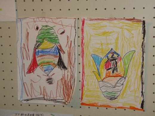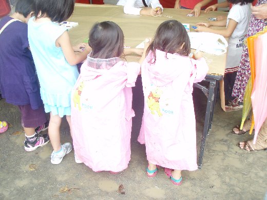 今日は年に一度のすみだまつりの日でした! 昨晩はこのためにご飯とお弁当を作り、準備万端。 朝あいにくの雨でしたが10時半頃にバスで錦糸公園へ向かいました。 まずは可愛い風車作りをして、11時になったので、 混まないうちにSLに乗りました。 そしてアンパンマンのバルーンを貰い、手形を押して 輪投げをして工作してお手玉を縫い(上手に縫った(^^) 、お昼タイムに。 地方の美味しいたくさんの出店が出ているので、出店で昼飯~と 言っていた旦那さんも、大丈夫。私はフライドポテトに揚げサツマイモに 芋尽くし(笑)、そしてますの塩焼き三匹千円を四人で美味しく食べました♪ 子供たちには食べやすいように混ぜご飯おにぎりを渡し、 私は幼稚園の説明会へ向かいました。 錦糸町からバス一本のこちらは、江東区の私立幼稚園。 泥んこ保育、お勉強なしの口コミに実はかなり期待していた園でした。 まずは園長先生のお話、優しそうなおじさん先生でした。 モットーは主体性を持つ。後の話は今まで行ってきた自由な園と同じ、 子供は遊びが基本。勉強なんて学校行ったらいやでもするんです。 自然に触れていろいろな体験をすることがこれからの人生においても 必ず役立ちますといったお話。 その後、園生活の写真をたっくさん集めた20分くらいのDVDを見ました。 一年のイベントの様子、キャンプの様子、親の参加の様子、一日の様子などなど。 キリスト教系で、かなり財力のある団体なだけに、広い室内 キャンプでのボート漕ぎや登山らしきもの、などの イベントがめちゃくちゃ楽しそう! ボーイスカウトみたいな感じって言えばいいのかな? アウトドアな感じが凄く気に入りました。 親の参加はかなり多そうだけどそれは全然イヤじゃないし。 しかも!写真を見てたら、あれ?羊毛ボールが? あれ?羊毛人形が??あれれ?布の天蓋が??? まさかシュタイナー?と言う感じの写真がいくつか出てきました。 何て楽しそうなんだろう!と感動のうちにDVDが終わり、補足の説明で 布や木で遊ぶこと、目鼻口のない人形を使うことなど説明があり、 シュタイナーとは言わなかったけど、まるっきりシュタイナーみたい! まさかこんな所でシュタイナーに出会えるなんて!と嬉しくなりました。 でも…たくさん出てきた写真で子供たちが楽しそうに遊んでるのは ふきっさらしの砂の園庭を水で濡らして泥んこにしたもの。 キャンプはなんと二泊三日!それってどうやってご飯を運べば…。 園長さんに質問すると誕生会は毎月皆でクッキーなど作り食べるし なんとせっかく弁当なのに毎日先生手作りのクッキーなどのおやつも出るそう。 動物はいないけどプールはかなり大きなものでもちろん塩素入り。 基本的にこちらも皆で揃って何かをやるとかじゃなくて やりたい人~って感じでやるそうなので、先生が上手に誘導すれば 大丈夫だと思いますよとは言われましたが…。 もちろん今日は実際の園舎も見てないし動いている子供たちも見てないので 後日見学に行こうと思いますが、シュタイナーに、外遊び、 我が家の感じに物凄い合致してる感じで、うおーー!気に入った~!と 心の中で叫んで幼稚園を後にしました(笑) でもアレルギー的にはかなり微妙…。 バスで錦糸町に戻ると二人はオリナスにいました。 雨がひどかったので、小さくなってしまった クロックスを買ってもらったそう。 なんと、黄色とオレンジ!いやあ、こんなに高いものだし、 毎日使うものだからもう少し普通の色にして欲しかった(^^;) いない間に二人は、震度7体験、お面、素敵な工作、もう一度SL、 そして何と風船を計八つもゲットしてました(^^;) パパがディーラーに用があるとのことで 邪魔な荷物をたくさん持って帰ってもらい、 私達は荷物をまとめてオリナス前の舞台を見ることに。 可愛らしい小学生のチアで、2人は大喜び(^^ 終った後はやっと雨がやんできたので、 またもや錦糸公園のほうへ向かいました。 またバルーンが割れてしまったので貰いに行き、 塗り絵をしてノートを貰い、飛ぶコップの工作をし 消防のお洋服を着て消防車のおもちゃみたいので 記念撮影をし、畳のところでミニチュア畳を製作。 さらに、エコ工作みたいなところで、 牛乳パックで素敵なジュエリーボックスを作り 雨水利用の促進のテントでエコ度をチェックして 1人ずつにダンボールのクラフトを貰い、とうとう時間切れ。 去年もいいましたが、これでぜーんぶただですからね! (食べもの以外)本当に楽しい素敵なおまつりです♪ 雨のために全然まわりきれなかったし、見たかった色々な 舞台も皆中止になってしまったので、明日は 晴れることを期待して、帰って来ました。 帰りはいったん帰って戻ってきた旦那さんが 車で来てくれたのでらくらく車で帰宅。 帰った後も二人はめちゃくちゃ楽しそうに 今日ゲットしたもので遊んでいました(^^ そうそう、それから、みかんですが、 湿疹激しく継続中。この感じは多分米。。。 うーん、この米粉はダメかもなあ。