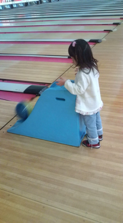 今日はお出かけはしごデー!昨晩ひつじ村の牧場がとうとう第三拡張をしたため(笑)嬉しさのあまり凄い夜更かしをしましたが、朝は7時半に起床。子供達はすっかり遅寝遅起きが身についてしまって蹴っても蹴っても起きないので、仕方なく教育テレビをつけて、あ!こんなのやってるよ!と言うとあっという間に起きてきました(笑)テレビを見て静かーな子供達に最低限の用意だけさせてドタバタと用意をしていたら、充分間に合うつもりだったのに予定より30分遅れの出発に(^^;急いで向かった先は、さくらんぼの会で、40分ほど遅刻でした。。今日のさくらんぼは、紙皿と折り紙で作るひな飾りで皆で楽しく作成しました。ぶどうくんは、工作をするには小さすぎる子供達のグループで、皆さんが抱っこしててくださったので、私はのんびり子供達と工作が出来ました(^^1時にさくらんぼが終了し、ちょっと時間があるので駅前の大きなスーパーへ。お土産を買い、とっても安いアクセサリーショップを見つけて楽しく買い物し、今度は電車で水道橋へ。今日二つ目の予定は、ヒナ君とボーリングでした(^^2時半待ち合わせだったんだけど、予定よりずっと早くヒナ君が到着したので、時間が余ってるはずの私達が結局後に到着(^^;今日は先日のサーカスの半券で、ボーリングの貸し靴と1ゲームが2月中だけ無料になるとのことでやってきました。子供達は、ガーターにならないようにバーがあがっていましたがそれでも玉を転がす力がないので玉が途中で止まっちゃいますよね。それを見た係りの人が、とても便利な道具を持ってきてくれました!滑り台のような形の上に、ボールを乗せる場所があるものでボールを乗せて押すだけで、ボールが真っ直ぐ転がっていくという優れもの!これのおかげで、子供達はめちゃくちゃ上手にピンを倒すようになり元々へたくそなママより、ずっと高い点数を稼ぎ出す結果に(笑)(でも最後はヒナタ母さんが一番になったんですけどね(^^)とても楽しく1ゲームを終えました。ぶどう君はといえば、さくらんぼの会場から、何とゲームが終るまでずーっと熟睡していてくれてとても助かった!さすがにゲームの終わりと共に目が覚めたので授乳をして、時間が早いので、後楽園遊園地のほうに行って見ました。会計は完全にただ!で、安く買ったチケットなのに何だかすごーく得した気分♪あ、そうそう、授乳の最中、昨日のヒナタ母さんのブログで食べたーい!と催促したバレンタインの生キャラメルをいただきました。生キャラメルが世に登場したのは妊娠後だったのでいまだ生キャラメルを味わったことなかったのですが、油っぽい感じですね!そしてしょっぱいよ!っていわれてたとおり、ちょっとしょっぱかったけど(笑)でも、うん、美味しかった!生キャラメルらしきものが食べられて大満足でした!そして遊園地へ行ってみると、一番安いメリーゴーランドでも400円。。。うーん、高いね。。って親同士顔を見合わせてたんですがヒナタ母さんが、100円の乗り物のほう行ってみようか!と言うので、そちらのほうにいくとゲームセンターがありそこにもミニメリーゴーランドなどがあったので、子供達は大喜びでそちらに入って行きました(^^;ゲームセンターに入ると、現在諸事情により(笑)仮面ライダーが出来ないヒナ君が、仮面ライダーのガンバライドの前で立ち尽くしてしまい、プリクラとろうよ!と子供達を誘導したものの写真は撮らない!と意地になってしまったのでしょうがなく、残りのメンバーでプリクラをとりました。そして、ミニメリーゴーランドに乗り、バスの乗り物に乗り、うちの子たちは大満足。それにしても最近のゲーセンって単価が高いですねえ。遊園地だったら800円だったところが、400円になっていくつも楽しめたからいいんだけど(笑)簡単にゲームがしたくないくらい高いなーって思いましたよ(笑)子供達が満足したので、そこから神保町のほうへ歩いていって夜ご飯へ。今日の夜ご飯は、しゃぶしゃぶ温野菜!階段しかない2階だったので、皆で荷物を手分けして何とか登ると、とっても小さなテーブルに通されてかなり狭くはあったんですが、豚シャブとたくさんのお野菜とたくさんのご飯を食べることが出来て皆大満足(^^うちのりんごは、前回のしゃぶしゃぶのときに、小さなお肉を4枚にしろって言ったのに6枚くらい食べて夜に痒くなったたので、「もうこれからはお肉4枚にしておく」ってつぶやいてたんですが(笑)、やっぱり今日もたくさん食べたい!と言い張り、大きなお肉を結局4枚、おにぎりを5個も食べました(笑)エリンギも試したし、痒くならないといいけど。ぶどうくんは、凄いご機嫌で、がんがん立とうとしたり暴れてたので、またもやすっかりヒナタ母さんに色々やってもらっちゃって私もバクバク食べさせてもらいました♪(笑)ご飯が終った後は、神保町まで歩き、エレベーターがなかったので2人でベビーカーを抱えて地下まで降ろし、ここでヒナ君とはお別れ!お