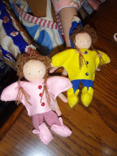 結婚式の土曜日は思いのほか長い日記になってしまいました。その後の生活、火曜日まで行ってみます。あ、その前に、書き忘れてたけどぶどうくん、披露宴終了辺りから凄い口の下が真っ赤になっちゃってたんですよね。洗ったら少しよくなったけど、暴れてたから私達の食べものがちょっとついたかな?3日たった火曜日にもまだ治りません。で、日曜日はどっぷり疲れた家族全員。私は朝はもちろん起きられないし、私が起きたら替わりに寝た旦那さんは死んだように寝てるし(笑)洗濯もたくさんあったし、明日のお出かけのためにご飯もたくさん作ってたので、お昼ご飯を終えて家事して、PCで結婚式の写真を整理したらあっという間に夜になっちゃいました。で、2人の、結婚式ごっこ。何をするかなって楽しみにしてたんです。結果は、キスシーンでもなく、ケーキカットでもなくケーキをお互いに食べさせるシーン!そこ来たか!って感じ(笑)子どもって面白いですねえ。ご飯をお皿に盛って、2人で交互に食べさせあってました(笑)2人の湿疹は、結構出てきていてうーん、何かしらダメなものがあったのかなあ?そして月曜日はお人形教室。今回からしばらくは事情により、お友達のお家での開催となったので車でお家へ。30分程始まりからおくれて到着したお宅は物凄く素敵なお家!もう、一体どうやって暮らしてるの???って位、どの部屋にも(全部屋見せてもらった(笑))全く荷物が置いてなくて、おかげで超広々!ご自分で改装もやってるそうで、綺麗な、本に出てきそうな真っ白の内装で、うーん、我が家には一生訪れない感じの綺麗さでした(笑)ってか、手狭手狭と思ってた我が家、ただ荷物が多すぎだってことがよーくわかりましたよ(笑)荷物がなければ、多分5人でも全然余裕なんだわ。。。で、その超広々の部屋のなかに、団地なのにアンパンマンの滑り台とブランコが置いてあって、子供達はそりゃあハッスル!他のお部屋も皆広々だから、最後には全てのお部屋を使って楽しく遊ばせていただいて1時に先生が帰ってからも、帰らない!と3時半くらいまで遊ばせて貰っちゃいました(^^;さすがにもう遅いから、下にあった楽しそうな公園で遊んで帰ろうと2人を説得して下におりたものの、物凄い寒さにびっくり!30分程しか私が我慢できず(笑)頼みこんで、帰路につきました(^^;で、そのお教室と、帰ってからの頑張りで7時ごろに出来上がった今回のお人形は、テクテク人形。指を入れて遊べる人形で、色は2人セレクトなんですがとっても可愛らしくできました(^^2人はそりゃもう大喜びしてくれました♪夜は更に酷くなってしまった三人の湿疹に薬をべったりと塗って寝かしつけました。←もし良かったらぽちっとお願いします!