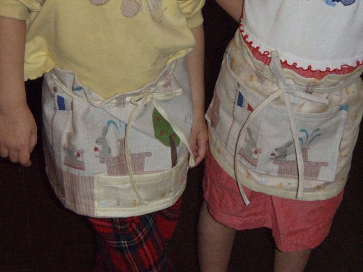 昨日の休日は、おうちでのんびりデーでした。旦那さんは寝まくり、私はアイロン&ミシンタイム。色々作成して一日が終りました(^^夜、双子とぶどうくんを旦那さんがお風呂に入れてくれてぶどうくんに服を着せた後、双子がお風呂に残りバトンタッチしたんですが皆で楽しく湯船に浸かっていたら、何やらぶどうくんの泣き声がドンドン近づいてくる!??ドアを開けると、パパと一緒にいたはずのぶどうくんが洗面所にいました。朝も昼も寝てたのに、パパはまた寝てたらしく(笑)ぶどうくん、随分行動範囲が増えましたねー!で、昼間のこのミシンタイム、この間あとで書くっていって後回しになってましたが、先日とうとうミシンデビューをしたんです(^^延長コードを買ってきてアイロンもミシンもテーブルに出して、始めたら、嫌いなアイロンも全然苦痛じゃなくて!生地の部品部品が綺麗にアイロンされていくのを見たら何だか楽しくなってきたので無事たくさんアイロンをかけて縫うことが出来ました(^^やっぱり結構使いづらいミシンで、ミシンでやってるにしちゃー汚い縫い目でしたが、無事完成!デビューには、真っ直ぐのものを縫おう、と箸袋を再度作ろうと思って布を子供達と選んで買って来たんですが、思いのほか絵の可愛い布だったので箸袋にしちゃうのはもったいなくてデビューはカフェエプロンにしたんです(^^と言うのも、先日、布を腰に巻いて、いらっしゃいませの人!ってごっこ遊びをしていたので。図書館で本を借りてポケットつきのものを作りました。これですっかり楽しくなったミシンライフ、お次は残り布でマスクを作ってみました。先日サンリオでいつも頑張ってるご褒美とキティーちゃんのマスクを買ってあげたんですがマスクを猫の形にするのは可愛いね!と気づいたので動物の形で(^^でもさすがにデビュー二作目にはちと難しすぎたようでこちらの出来はいまいちでした(^^;そして三作目は、当初の目的の箸袋。こちらも綺麗に完成!用意しておいたアイロン名前テープに、子供達が名前を書きました。そして昨日は余力があまってたので、以前作ったマスクを解体して、綺麗に縫い直しました(^^ピンクのマスクには先日両国で買って来たピンクのゴムをつけて♪うーん、楽しい(笑)もうミシンも机に出しっぱなしにして次は何を作ろうかと考える日々です(^^ちょっと短いので、一つだけ先日大爆笑したりんご語録を。みかんがパソコンのちょきちょきで、天使を作ったんです。それを見たりんご、「なんで天使は水の中でなむなむするの?」って言うんですよね。「えっ・・・なんで水の中???」って聞いたら「だって頭に水の中のやつ・・・」っっっっ!!!!!!!天使のわっかが浮き輪に見えたのね!!!!!!!(笑)