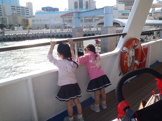 昨晩は、痛いといっていた自転車練習の筋肉痛が(笑)更に何だか悪化して、筋を違えたような刺さるような痛さが何もしなくても続くようになり、マッサージチェアで就寝してしまいました(^^;夜中に授乳したくて起きてきたぶどうくんに起こされた旦那さんに呼び戻されました(笑)今日は土曜日だけれど、お出かけのため7時起床。なにやら、私たち幼稚園のお姉さんなの、と張り切った二人。洗濯物を取り込み、たたんだのをたんすにしまい、洗濯物を一部干し、とずいぶん手伝ってくれました。おかげで(?(笑))時間通り9時過ぎに出発!いつもの駅ではなくて、ちょっと遠い最寄り駅まで歩き電車に揺られることまずは30分。今日は長い道のりなので、まずは渋谷まで絵本を読み、ドリルっぽいのの残りをして過ごし、電車を乗り換えやっと目的地に到着!私の母校(高校)のすぐそばの今日の目的地は、とうとう始まった小学校見学です(^^駅から暑い中坂を上って10分ほどで着いた小学校は私の中ではちょっと気になるけど、有力候補ではない、小学校。でもまあ、ちょっと気になるなら見ておこう、ということで今日の説明会に行くことにしました。事前の問い合わせで、お子さんは出来れば預けていらっしゃってください、どうしようもなかったらしょうがないのですが、と言われたんですが、あいにく今日は旦那さん午前お仕事の日なので三人連れて(^^;駅から歩くうちに、周りの人たちを見て、明らかにやばい!と気付いた私(笑)私の今日の洋服は、授乳服の白と、黒のボックススカート、白のサンダル。気持ちばかりファンデーションを薄く塗って口紅しました。子供たちはファミリアの赤いワンピースと白のサンダル。かばんは普段と同じピンクのショルダーだったり、青の手提げだったりたくさん!それが。。。周りの人たちったら、子連れはほとんどいなくてみーんな同じ紺のスーツ着てる!ちょっといた、と思った子供たちも、紺のスーツ着てるし!これはやばい。。。と思いつつ小学校に入り、ベビーカーをおいてたくさんの荷物を持って、やっと寝たぶどう君を抱いて会場に入ると、きゃー!!!約180人くらいの人、私以外例外なく全員紺のスーツ着てるじゃない!これがお受験の世界なのね。。。子連れは一割もいなくて、しかも全員一人だし。。。はっきり言って浮きまくりの私たち(^^;道々会った先生方が優しかったのはよかったけど(^^;前から順に座るようなので、こそこそと一番はじっこに陣取りました(^^;こちらの小学校はお弁当の小学校で、基礎重視で、いいかな、と思っていたんですが、一時間半の説明会を聞いて、めちゃくちゃ好印象!凄く少人数のクラス編成、遊びを重視した日常生活、たくさんの体験学習、何人か話をされた先生方もとても暖かかった!次々出てくる楽しそうな写真たちに、子供たちも嬉しそう。弁当だからアレルギーとしてもあまり心配なことはないし、、。学校案内も、園児でもわかるように作ったそうで二人で楽しそうに一生懸命見てましたが、楽しそうなんですよね。問題点は、中学校から男の子がいなくなってしまって女子高になること。そしてちょっとしか取らないのに、今日180人ほども集まってること(笑)そして、中学から出てしまう男の子たちのために、小学校5年からは受験体制で、女の子は出ないんだけど、男の子と一緒に受験対策の勉強をすること。中学受験したくない、と思ってる私には、これはマイナスだなーと思うんですが、男の子たちの進学先を見てびっくり!ずいぶん名だたる名門校ばかり入ってるんですよね。少人数の学校なのにこのラインナップは凄い!!って感じ。中学受験の何がいやかって、私の頃でも、小学校4年から3年間ほとんど外で遊ぶことも出来ず毎日家で5時間は勉強していた、というのがとても嫌だったんだけど、学校できちんとやってくれるんだったら、それもありかな?なんてこともちょっと思いましたよ。5年生からだったら、一番大事にしたい低学年は心配ないし。期待してなかったのに、こんなにいい感じとは思わなかったなあ、と嬉しくなる感じの学校でした。説明会の間、子供たちはといえば、双子は、折り紙で熱心に製作をしていてくれたのでとても静か!ごそごそ動き回ったりして、静かな室内でちょっと目立ってはいましたが年中さんが一時間半、あれだけ静かでいられれば、まあ何とか大目に見られる範囲じゃないかなって感じ。11時開始だったので、もちろんおにぎりも持参していて、途中食べさせたのも正解!12時半までおとなしくしていてくれました。問題はぶどうくん。ちょうど説明会の時間に寝てくれるかもって期待したのに抱っこしたら起きちゃって、おっぱいもあっさり飲み終わりご機嫌に。ご機嫌になるとうるさくなるのがぶどう君で(^^;声を上げるたびに小さくちぎったぽんせんを口に放り込み(笑)何とか半分はやり過ごし、ポンせん無くなってからは、今度は声を上げるたびにおっぱいを無理やり口に押し込み(笑)、常