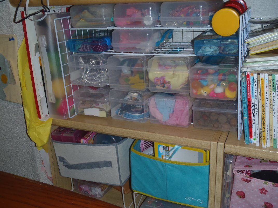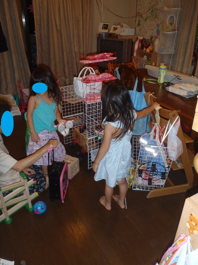 今日は久々何もないデー(^^気を抜いてたら朝起きたら相変わらず超近いところで2人がテレビを見てました(^^;ま、それも今週までだから。。。ね(笑)ご飯を食べて~、洗濯して~、義母のために部屋のものをマッサージチェアの上に上げて~(笑)三人がお風呂で水遊び中に布団を片づけて~、ご飯を作り。。。昼食後は最後のお片づけ!まずは、この間途中でやめた押入れの中。押入れの中は、布団がたくさん入っていて、何が入っているかも把握できてない上衣装ケースが何個も入っているのが、あけられないようになっていて(笑)既にその中に入ってるものもよくわからなくなってるんだけど、ほこりに弱い私たち、(特に私が弱い!一番ダニハウスダストの値が高いですからね!)もはや手をつけるのさえ恐ろしくなって放置してあったんですよね(笑)でもこの熱のうちに!と思い(笑)、どうにかすることに。いつも掃除機圧縮袋で多量の布団を圧縮していたんだけど、あれって半年くらいで圧縮が弱くなりますよね?そうするとだんだん押入れの中で膨らんで、押入れがあけにくくなってくるんですよね。だからといって半年に一度圧縮をやり直すほどの気合もなく、あけにくいなーって思いつつもそのままになってたんですが。。。義実家でいつも布団や毛布が、きちんと一つ一つ布団袋に入っているんですがふと、そうか、あれに入れれば、必ず形が決まるんだ、と今更ながら気付いた私(笑)それで、先日途中で片づけやめたあと、オークションで購入したんです。一面窓になってて持ち手のついてる布団袋300円で5つ。布団を入れ替えるときに確認したら、結局我が家には使ってない布団が3組+αあるらしい(^^;これは明らかに多すぎ。今は一人しか泊まれないし、将来引っ越したときに、誰が泊まるかって考えると、うちの両親くらい?そしたら二組あれば十分でしょ?だから一組は、処分しよう!一組は今義母の分でだしてあるから、使ったら引越しまで別の部屋で保存しよう、と、一組+αだけ買った布団袋に詰め込んでみました。そして開かない衣装ケースを真ん中に持ってきて、その左右に布団袋を配置して、その他の裸で入っていたものたちも全て袋に入れました。出来上がった押入れの中は。。。うわーーー!なんてすっきり!(笑)私、押入れの中に、裸で物が入ってないの、生まれて初めて見ました(笑)実家も直に入れてたから・・・・。こう考えると、生家の習慣って大事ですね(笑)いつも片づけても、どこが違うかわからないって言う旦那さん(怒笑)もこれは凄いって言うはず!と大満足の私。(片づけに関しては、凄いって珍しく言ってもらったんだけど布団は処分しちゃダメだって(涙)義実家におくろうだってさ!!!!(笑))その後掃除をして、空気清浄機をハイパワーでつけて、お風呂に入ってほこりを落としたらもう4時半!もう一つの片づけのためのお買い物に急いで出かけることに。向かった先はアルカキットのダイソー。きちんと計測してきた長さに沿って、ワイヤーをたくさん買い布団袋も買い足して帰宅しました(車で)。夕食を先に済ませて、子供たちと一緒にワイヤーを結束バンドでどんどん結んでいきました。6枚のワイヤーネットで、三段の棚を作り上げて作ったのは子供用の棚。(入れたい場所にほんとにぴったりのができた!)以前、子供のおもちゃを一つづつ透明な箱に入れて収納しましたが縦につんでいるせいで、やっぱり出しにくくて、だしにくい場所の箱は出せず、遊ばないおもちゃとかもあったんですよね。で、この間借りた飯田さんの本で、取るまでのアクション数が大事、とあっておもちゃたちは、棚の中の箱の中に、袋に入っている状態のものだったり上のものを取って取り出す状態のものだったりで、そうするとアクション数が3とかになってだすまでに時間がかかるんですよね。だから、色々考えた結果、一番は引き出しに直接しまうことだけれどぴったり合う引き出しはなかなか売ってないし、値段もかかる、ということでアクション数を一つだけ増やして、箱を一つづつ並べて取りやすくする、という方法をとることにしたんです!ついでに、箱の大きさと中身の多さを見直して入れ替えたり、使ってないおもちゃは処分したりして、やっと完成!多量に増えたお祭りのおもちゃとかも、とりあえずのおもちゃ放り込みスペースを一つから二つに増やしたのでそこに放り込み、やっとやっと子供スペースも完成♪これで今回の片づけは終了です♪後は、オークションに出そうと考えてるものたちがたくさんあるのでそれを実行し、また出た古衣装を処分して、弟たちにあげる赤ちゃんグッズを少しづつ実家に運べば今出来ることは終わりかな。でもでも、後残ったものは全部引っ越し先に持ってくのかって言われるとちょっと微妙なんですけどねえ。これ以上減らせと言われてもなかなか難しい。。(笑)後減らせるとすれば、、、作家で揃えた本と漫画かしら。。。うーん。。。(笑)で、その後は、2人がまだまだ