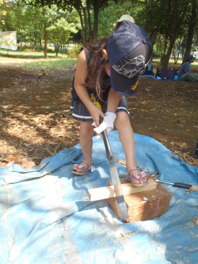 昨晩は九時前に寝た私。2時におきて4時前に寝て。。。今日起きたら8時半!9時間半も寝られた~♪毎日寝不足で疲れていたので充実でした(^^今日はお出かけのため、ご飯を食べて家事をしてお弁当を持って10時半ごろ出発!木場公園に行くには、このバス!と思ってなかなか来ないバスを待って乗り込んで、どこで降りるか確認しようと思ったら。。。あれ?バス間違えた~!!!(笑)しょうがないので急いでバス路線図を検索して、色々検討の結果門前仲町の駅で降りる事に(^^;真っ直ぐ一本でいけるはずなのに。。(笑)交番でエレベーターの乗り口を聞いて、隣のスーパーでせっかくなので私のお弁当にするためのおかずを購入して東西線に乗ろうと思ったら、エレベーターは地下に降りる分だけで東西線はそこからはるか階段の上!全部ベビーカーかついで上ったんです(涙)そういえば、昨日も幼稚園のお迎えのあと帰ってきたらマンションのエレベーターが点検中でベビーカーもってあがったんだよなあ(涙)乗換えをバスにすればよかったとがっかりでした(^^;東西線に乗ったら一駅でやっと木場に到着。今日は、木場の冒険遊び場、プレーパークに行きました。前からあった木場の自主保育的な遊びのメンバーがプレーパークを開いたらしく(しらなかった!)ミクシーで今日は藍染をするよ!って書いてあったので行く事にしたんです(^^ひろーい木場公園の中の、以前どんぐりまつりもしていた、南の冒険遊び場は木々に囲まれて直射日光の入らない涼しい場所なのでとても快適♪早速到着するなり藍染をやらせてもらう事にしました。(ぶどう君はバス降りたら即寝てくれた♪)エコバッグを染めるんだけど、子供たちはろうそくをとかしたものを筆につけて絵を描くことに。私は絵はダメなので幾何学模様を入れるべく、自分であれこれ折りたたみを工夫してやってみました。折りたたみだけじゃなくて、ビー玉で絞りも入れて私のは完成!子供たちは表も裏もあれこれお絵かきして、私が隅っこにビー玉絞りを入れて完成!ろうが固まるまで時間がかかるようだったので、そっちでやってる木工をしたい!と二人が言うので、木工スペースへ。釘打ちたい?ときかれて、のこぎりがしたい!と二人が言うのでメンバーのお兄さんが手取り足取り教えてくれて、2人で一本の木を交互に切り落とし満足そうな二人。そろそろろうが固まるから、ということで藍染に戻り、まずは水洗いをしてから藍をもみこみました。10時半からやっていたので、藍がだいぶ薄くなってしまっていて既に出来上がって干してあるものほど綺麗な藍色にはならなかったんですがまあそれなりにそまったので、くっつけていたビー玉などを外して広げてみるとなかなか素敵な模様が出来上がりましたよ(^^干したあとは、そろそろ昼食にしよう!とお弁当を食べる事に。ろうでお絵かきしたテーブルをお借りして食べようとしたらぶどう君が起きてきたので一緒に昼食タイムに。起きたぶどう君、ご飯そっちのけで、きらきらした木漏れ日に夢中(^^お外は気持ちがいいよね♪美味しく昼食を食べていたんですが、りんごが、「こうやってお外で食べるのも美味しいね!」だって!!!今までえー、公園はやだ~。お外は嫌だ~。お店で食べる~ってうるさかったのはどこの誰ですか!?(笑)ま、花粉の時期は痒いからだめだし、夏は暑いし、机がないと食べにくいし、今日がベストだったとは思いますけどね(^^;ぶどう君がなかなか食べ終わらないので、痺れを切らした2人は食べ終えた後はまたもや木工へ。お兄さんと凄く楽しそうに釘打ちをしていて、ママ要らずだったのでママはのんびりぶどう君にご飯を食べさせて木漏れ日を楽しみました(^^途中シュタイナー勉強会のお友達にもあったりしたんだけどこのメンバー、何だか凄く落ち着ける感じ!うん、また来たいな!って思える素敵なところだなーって思いました(^^しばらくしてみかんが、木はおしまい!あっちでやってるどろんこがしたい!と言うので一緒に泥んこを皆がやっていたほうへ。さっきまでは皆で楽しそうにやってたんだけど、タイミングを逸したらしく皆いなくなってしまったので、みかんと私でやることに。ぶどう君が離れてくれず小脇に抱きかかえたまま、みかんが穴を掘ってくれ、というので、大きなスコップで一生懸命穴を掘る私。やっとのことで穴を掘り終えたら、水を入れろ、というのでこれまた小脇に抱えたまま水を何度も何度も運びこみやっと二つの池が開通!はだしで泥んこのみかんはとても気持ち良さそうでした(^^ぶどう君は時々泥んこの上を歩きつつ、知らない人ばかりだからか基本的にぐずぐず。その間りんごはずーっとずーっとなにやら木工を続行中。凄い集中力だね!やっと開通したと思ったら、3時になりプレーパークお開きの時間。それじゃあお片づけ!と、池の水をくみ出し、穴をふさぐ、と言われて一生懸命作ったのにがっかりの私(笑)さすがにこれは小脇に抱えたままじゃ無理で、ぶどう君をベビーカ