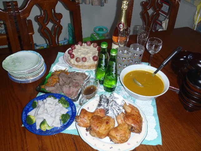 金曜日。昨晩は、夜中からパソコン始めたのですっかり遅くなり、 三時間睡眠で起床(^^; ぶどう君熱は下がらずぐったりしてて心配。 双子のほうはかなり調子がよくなってきたようなんだけど、やっぱり イマイチなのか、朝から大喧嘩! (昨日買って来たお土産で喧嘩するからがっかり(笑)) おかげで9時になっても家も出られず、車で送ることに。 ぶどう君は顔も上げられないくらいぐったりしていて、ばあばに預けても あまり泣けないくらい(><) でもかなり飲んでるし食べてるんですよねえ。下痢もしてないし、 脱水じゃないと思うんだけどなあ。。。 双子を送った後は、実はまだ、ぶどう君のサンタのプレゼントがないので 急いで車でヨーカドーへ。10時前に開いてるのはヨーカドーだけなんですよね。 おもちゃコーナーであちこち探し回ったけど。。。。うーん。。。どうしても欲しいと思えるものが 一つもない(><) 小さい子ほど妥協したくないなあ、、、と思い出し、時計を見ると10時なので、 ヨーカドーを諦めオリナスのべビザラスへ移動しました。 べビザラスでは、おもちゃのコーナーは木の玩具があったのはいいけど、 うちにもいっぱいあるし、やっぱりあまりぴんと来なくて、考えてるうち、そうだ! あれが欲しかったんだ!と気付いたものが。 それはこれ! http://item.rakuten.co.jp/babyshop/c/xxx-xxx-xxxxx ぶどうくんだけ椅子がなくて、いつも双子と取り合ってたし、合板だけど 木がナチュラルで凄く素敵で欲しいなあ、とずっとずっと思ってたので、 私的には大満足!(双子には座ると音が鳴る安っぽいのを買っちゃってたから 買い換えるほどじゃなくていつもうらやましく思ってたんです(笑)) 良かった!と10時半過ぎにそのまままっすぐいえに帰ると、今日はあまり泣いていず、 ぐったり寝て待っていてくれました。 義母が洗濯をしてくれていたので、私はぶどう君を抱っこして 、 急いで今日のクリスマス準備を開始。 今年のクリスマスメニューはこちら。 ☆ポテトツリー ☆ローストビーフ ☆鳥もも肉 ☆かぼちゃスープ ☆ケーキ ポテトツリーはちょうど母からクッキーを重ねてツリーの形になる抜き型を貰っていたので それで柔らかいサトイモを抜いて(笑)重ねてツリーの形に。 とうとう牛肉が食べられるようになったので、今年はローストビーフを くっつかないホイルで焼いてから、野菜の上に乗せて無水鍋で蒸し焼き。 チキンは結婚以来毎年丸焼きにしてたけど、毎年旦那さんの反応が悪く(笑) 今年はどうしてももも肉が食べたい!という旦那さんの要望により、もも肉に(笑) 皮に穴あけて塩もみし、オーブンで焼きました。 かぼちゃスープは早速豆乳を入れて濃厚に♪ ケーキは色々悩んだけど今回はこのレシピで。 土台は、レンジ蒸しケーキ。 ササニシキ米粉、かぼちゃパウダーとりんごジュースと重曹、りんご酢を混ぜて レンジでチンするだけ。あまり膨らまず(><) 豆腐入れるのとどっちにするか迷ったけど、昨日レンジパンがふわふわだったのに 気をよくして入れなかったんですよね。 うーん、入れればよかった(><) パンきり包丁で半分にスライスし、中にバナナとクリームを挟み、 上にぶどうでトッピング。 クリームは念願の豆乳と米粉とりんごジュースで火にかけて練りました。 豆乳入れるだけであっという間に綺麗にクリームになって感動 ! 豆乳の威力って凄いですね♪ 途中お昼ごはんもはさみつつ、急ピッチで進めて、何とか1時には、 すべてが出来上がり、使ったものも全部洗って料理完了! 少しだけ元気が出て、泣けるようになったぶどう君を置いて幼稚園へ向かいました。 今日は幼稚園最終日。終業式があって、園長先生からのお話がありました。 お話は、毎度おなじみ、ほんとにためになるお話で、色々考えさせられましたよ。 そのうち余裕があれば書きますね(笑) あき時間に近所のお友達と話してて、豆と糖分が大丈夫になった!って報告したら 突然お友達が泣き出したんです! 良かったねえ!!!って。その心に感動して私も泣きそうでした(><) 最初は、みかんが良かったねえ、って泣いてるのかと思ったんだけど (お友達自身が長いことみかんレベルの除去してたからね)、 良く聞いて見たら、私に対して、ほんとに頑張ったよね、大変だったねって 泣いてくれてたんだって!いい友達ができてよかったなあ(><) で、あっという間に二時になり、たくさんの荷物を持って降園後は車でオリナスへ。 2人は今日のお弁当全部食べてくれたそうで、良かった~♪ 日曜日以来ほとんどたべてないので、今日は昨日たくさん食べてくれた米粉パン+カシスジャム 味噌と梅の海苔巻きを入れたんですよね(^^ 米粉パン、お弁当温めたらふわふわで食べられるんじゃないかって思ったんだけど やっぱりふわふわだったんだって♪お弁当温めに向いてるメニューですね♪ お弁当ですっかりおなかいっぱいらしく、今日は珍しくおやつを食べないというので 帰りに早く帰るためにケーキ用の果物を先に買い、先
