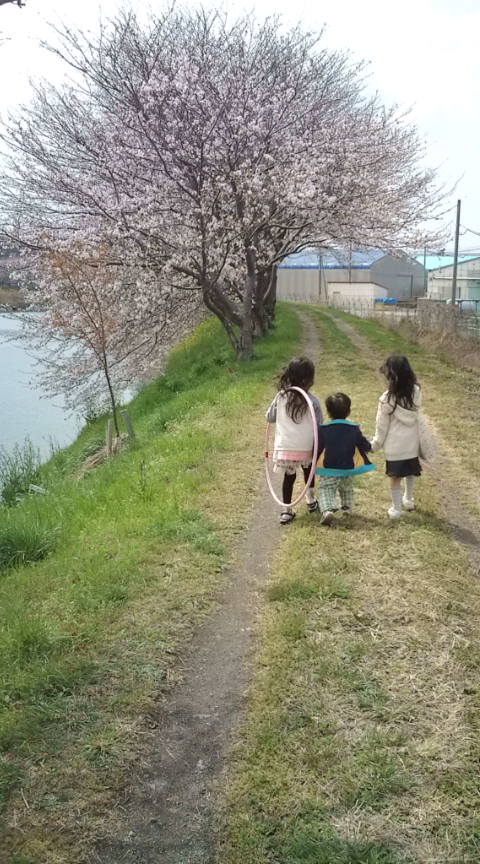 4月16日。今日はお休みだけど初ピアノの日! 結局、長く休むとついていけないからヤマハは退会する事を決め 個人にしよう、と思ったら義母のお友達(だけど若い(笑)がピアノの先生だということで 短期間かもしれないけどみてくれないか?と頼んだんですよね。 そうしたら土曜日の午前中なら来てくれる、と言ってくれたので今日が初日(^-^) 間に合うように、休日にしては早めの八時に起きて(笑)、朝ご飯終えて 明日のご飯作りがあらかた終わる頃先生が到着しました。 結局ヤマハで、学んでほしいな、と思っていたのは音感だったわけですが、 それはしっかり身についた二人。音楽を聞いたら、簡単なものなら歌を自分でドレミで歌って それをもとにひけるようになりました。 ひな君が発表会で弾いた曲の動画も(笑)何度も見て、ドレミで歌って弾いてるし (メロディーだけね!)ただ、最初からわかってたけど、ヤマハは音で弾くので 楽譜は全く読めず!はっきり言ってト音記号のドしかわからない状態なんですよね(笑) しかもどうしても右と左の違いは覚えたくないみたいで、未だに右がどっちかわからないんです(笑) 音感もついたし、そろそろ楽譜読めて欲しいなあとドリルを買ったけど続かずだったので 事前にレベルを伝えたときに楽譜読めず右左もわからないけど両手で弾けると伝えたんです。 で、レッスン開始。まずは一番上手な曲ということで発表会の曲を交互に弾き りんごは得意げに好きで練習していた過去の曲を弾き、こちらにきてから 私が教えたら気に入ってずっと練習していた蛙の歌を、輪唱で右左ずらして弾きました。 みかんも蛙の歌はできるよ!と弾いたらいつの間にか輪唱が出来ていてびっくり! やっぱり好きで練習すると違いますね。 レベルがわかったところで、知ってる曲の音符を読んでみよう!と質問。 ドレミで覚えてるから順番に聞かれれば答えられて、わかってるじゃない!といわれ じゃあ、と、ドからソまでの音符のカードが出てきてカルタ遊び! 最初はドから順番に並べて、お次はカルタで取り、最後はランダムに出したカードを当てて 当たったらカードは自分のものゲーム! 見てたらみるみるうちに覚えてる二人!上手だなあって感心しました。 ヤマハは、楽譜を読むのは目的じゃないから、とホームワークを一ページ、一回に 一音習うだけだから、ランダムにやられると全然わからなかったのに! お次は五線譜に、ドからソまで書いてみて、線の間ばっかりの音符でお山作り→ 線の上ばかり→上、間、上、間と書き進めて、 最後にドレミファソ書いてみてってやったら書けてる! やっぱり書いてなんぼなんですねえ、勉強って。 じゃあ次はこのテキスト読んでみよう!と出してきたテキストは童謡のテキスト。 音符を読んでみたら知ってる歌ばかりで、じゃあ読んで弾いてみよう!って 最後には音符読んで弾いてるし!たった一時間で音符が読めるようになっちゃいました! 超びっくり(>_<) このテキスト置いていくからこの二つは練習しておいて後は好きに弾いてね~と 先生が帰った後、あんなにヤマハがつらかったみかんが、楽譜見ながら夢中で ずっと練習してました♪いい先生で良かったなあ! 嬉しくなりながら家事を終わらせ、昼食に。 ぶどうくんが寝ちゃったから、約束していた腕時計かと(千円で売ってるのを見つけてあった(笑) 五線譜を買いに休日もショッピングモールへ。 買い物を終えて帰るとちょうどぶどうくんが起きてきたので 葉桜を見に、みんなで土手に向かいました。 桜が舞うのがみたい!と二人が言っていたように桜が舞い散り、あちこちに菜の花が 咲き、とてもきれいな風景の中、三人は桜笛吹いたり桜や菜の花摘んだり、 フラフープしたり(笑)自然を満喫♪ 寒いから帰ろう!と歩いていたときに面白いことが! いつものように縁石をあるいていた三人。 りんごが途中でずるっと滑ったんですよね。 大丈夫?って聞いたら大丈夫って言ったんだけど、それを見ていたぶどうくん。 「り!」って言って(いつもそう呼ぶ)走り寄り、手をつなげ!とえらそうな顔! 危ないから手をつないでやるって言ってるみたいなんですよ! もうりんごと私は爆笑。その頃みかんはさらに先で縁石歩いてて、 しばしりんごと手をつないだぶどうくんはみかんを見て、今度は「み!」って言って駈けていって みかんと手をつないだ!(笑)自分が守ってるつもりなのかしら!? さすが男の子、頼もしいですね(>_<) ちなみにその後調子に乗って双子の真似して、金属の格子の上で飛んだら格子に足を とられて転んだぶどうくん(笑)ママ~、がっこ~って最後は抱っこで帰宅でした(^^;) 帰った後は、欲しい物も買ったし、外もいったし満足した三人が楽しく遊んでくれたので 私はパソコンタイム。そういえばこちらには用意していなかった、防災セット、 手回し充電、アルファ米白米、大地のソーセージ(これは普段用)等を注文しました。 アルファ米、水を入れるだけでできるやつで、一つ500円。一応20個は買